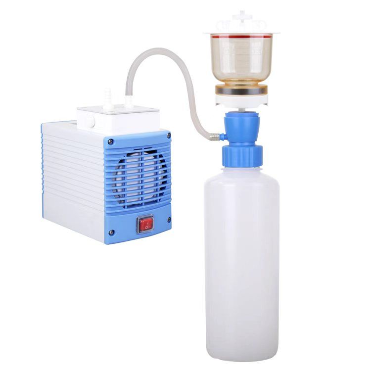 所以在过滤氢氟酸时,可以优先选择聚砜或聚丙烯材质的真空过滤瓶。例如圣斯特的CH300PA氢氟酸/磷酸真空过滤装置,使用了聚苯砜PPSU材质制作过滤漏斗,用于盛装待过滤的液体;PP聚丙烯材质制作集液瓶,用于收集通过滤膜后的滤液。这种配置综合了聚苯砜材质耐腐蚀性好、强度高,以及聚丙烯材质能耐受氢氟酸或磷酸,同时成本较低的优点,各自发挥两种材质的优点。此外的抽滤泵配置上,使用了从进气接口,到泵头、内部管路、气片、出气口均为PTFE聚四氟乙烯材质的耐化学腐蚀性隔膜真空泵,过滤时挥发性的气体抽入泵内也不会损坏内部零部件。